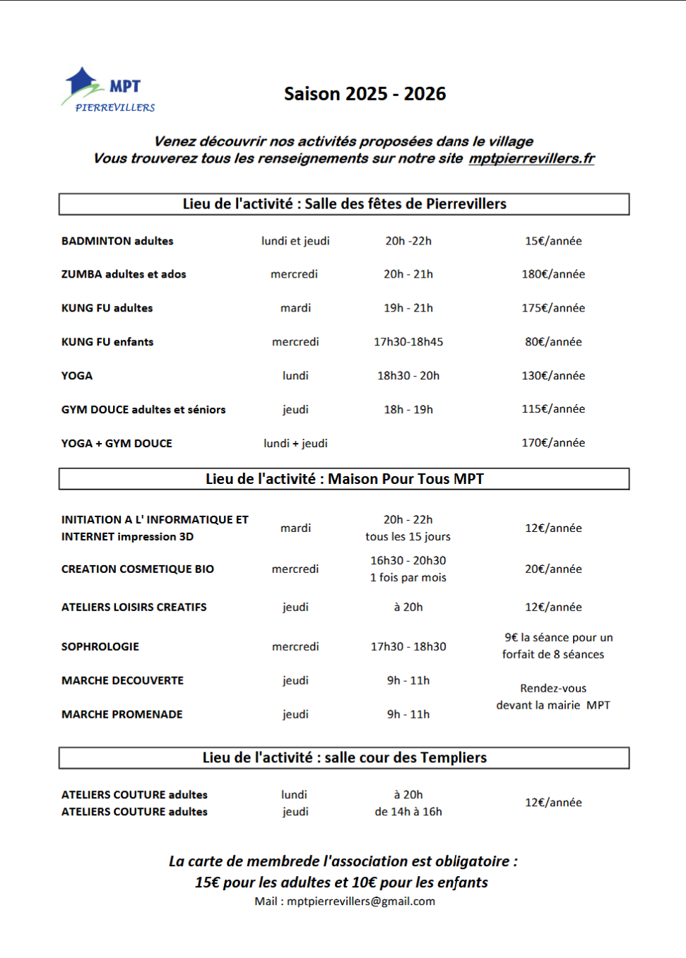 Les infos pratiques